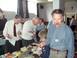 TTRCA Publicity Officer, Bruce Jordan (left) with other enthusiasts at a sales table.