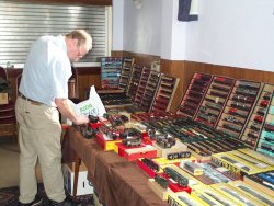 On David's table were two rare Trix Express American sets. The locos in these sets are the very early type with disc wheels. Locos exported to the USA have a red tinplate cowcatcher mounted at the front.