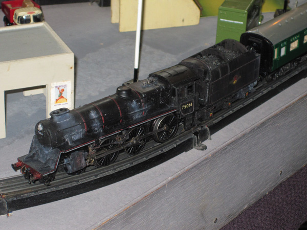 ![]() One of Clive's clever conversions. A weathered Class V with double chimney and LMS tender.