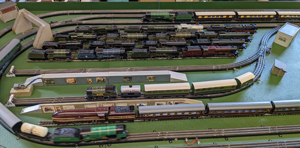 Phil Delnon was running 2-rail DC Trix. Peppercorn and Warship shown here. |