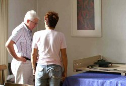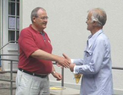 and Bernd Tauert (Germany) discuss setting up their display ...