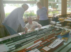 H.Peter Hess (Germany) preparing his demo layout, and arranging some TRIX DC 3-rail locos