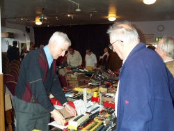 TTRCA Publicity Officer, Bruce Jordan (left) with other enthusiasts at a sales table.