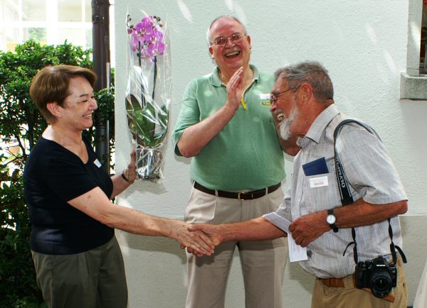 Enz congratulated by Franz Nowack for her support and hard work during the