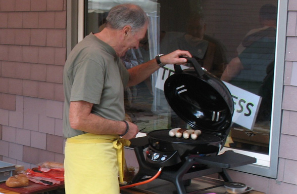 Grill-Master Ruedi Witschi, one of the outdoor catering team, preparing