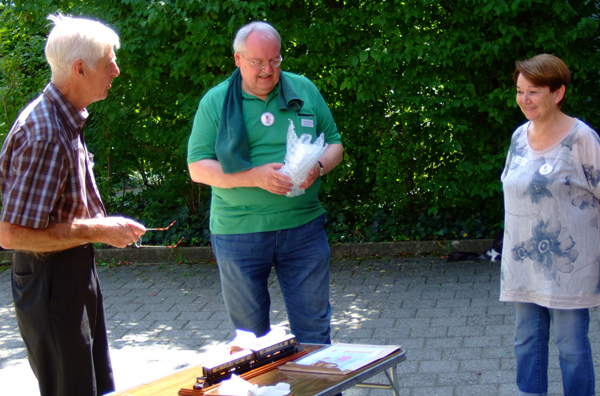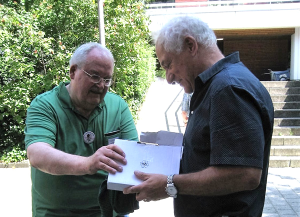 delights Patrick with some non-Trix gifts while Norbert Gerharz peeks to